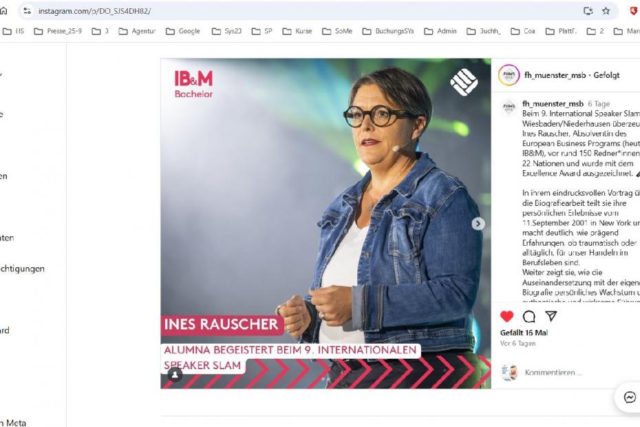 24.09.2025 "Alumna begeistert beim 9. Internationalen Spealker Slam" Instagram von FH Münster EBP