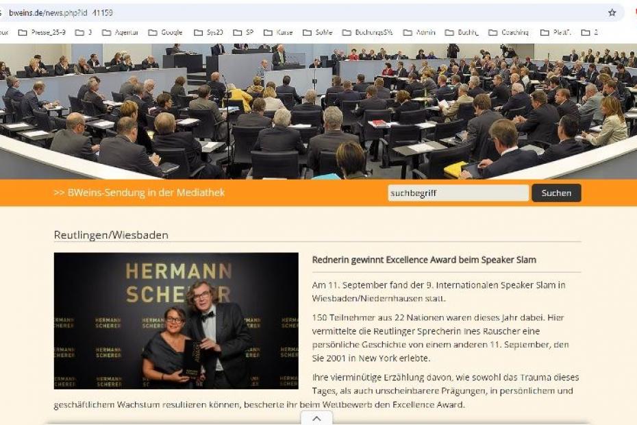 15.09.2025 "Rednerin gewinnt Excellence Award beim Speaker Slam" https://www.bweins.de/news.php?id=41159