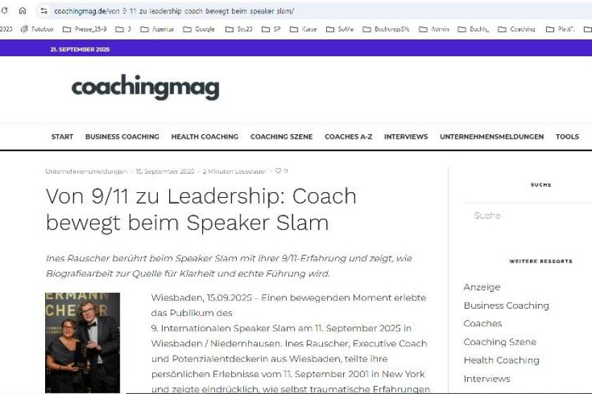 15.09.2025 "Von 9/11 zu Leadership: Coach bewegt beim Speaker Slam" https://www.coachingmag.de/